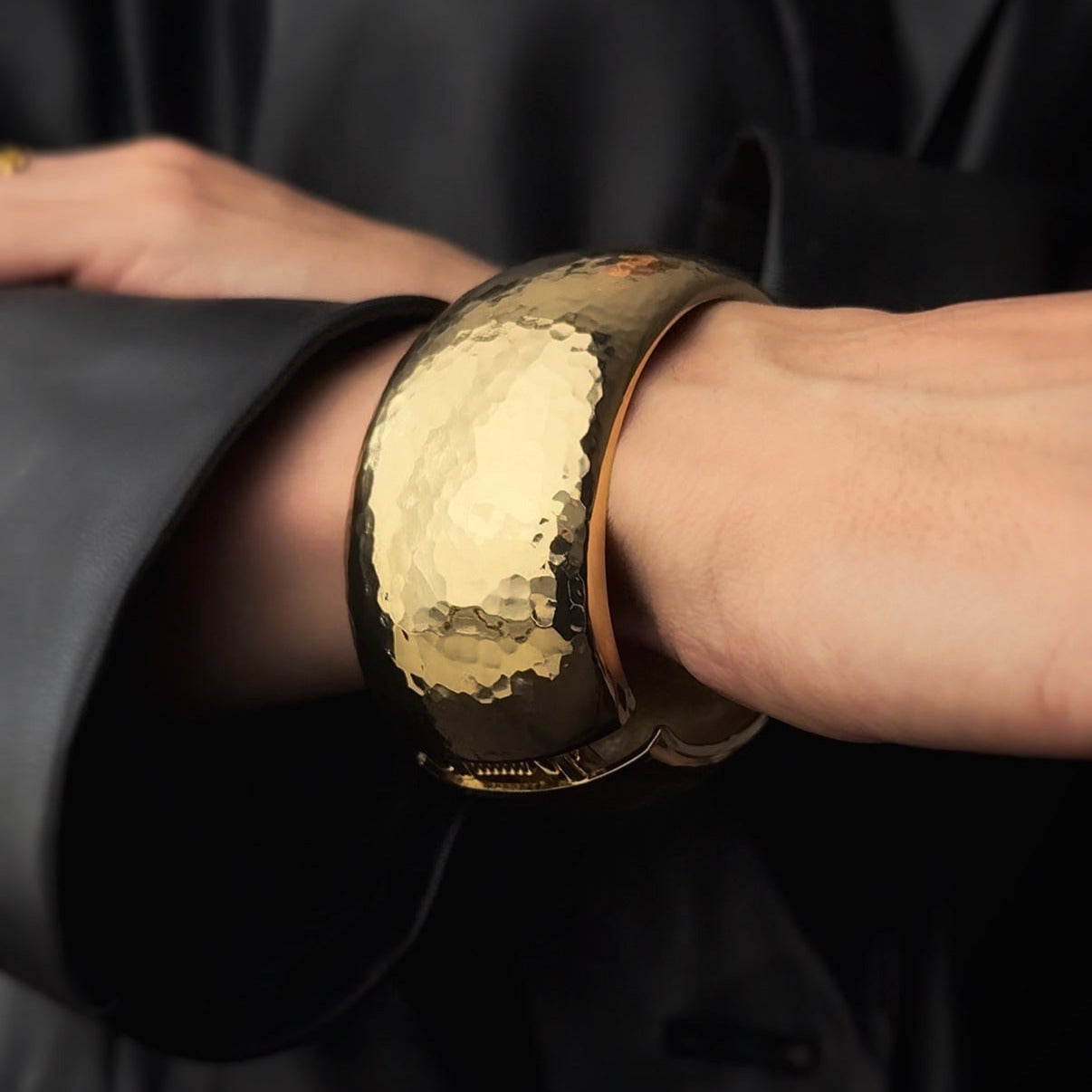 Prachtige brede armband met brushed look.  Klikt open via een scharnier. Kan gecombineerd worden of alleen worden gedragen.