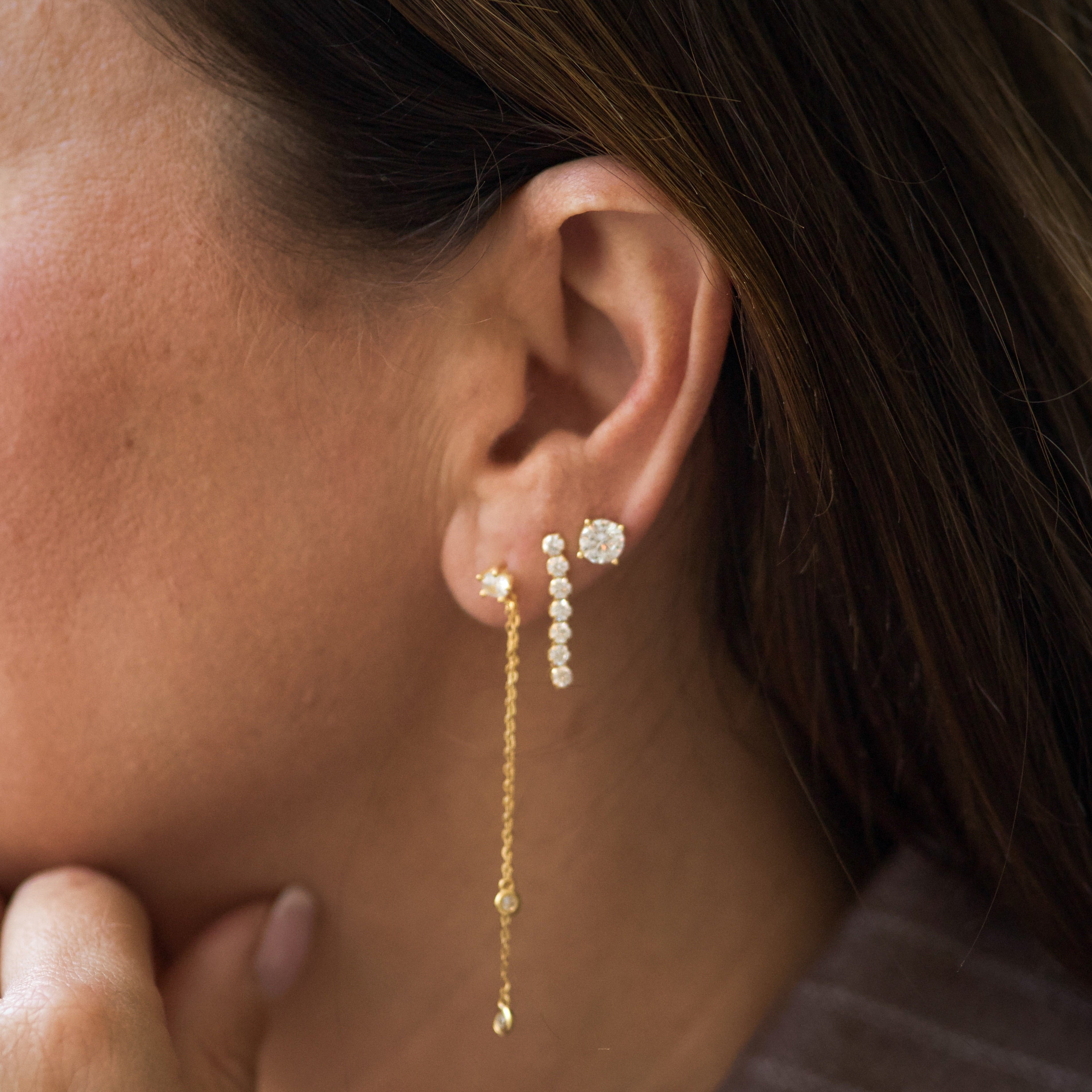 Trendy oorbellen met witte zirconia steentjes.  Kan per stuk aangekocht worden, mix and match.