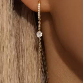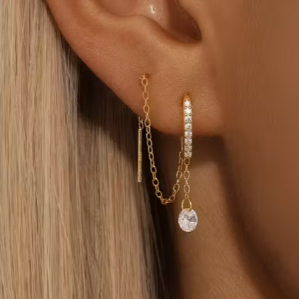 Trendy oorbellen met witte zirconia steentjes. Kan ofwel in 1 gaatje gedragen worden of in 2 gaatjes (zie foto's). Kan per stuk aangekocht worden, mix and match.