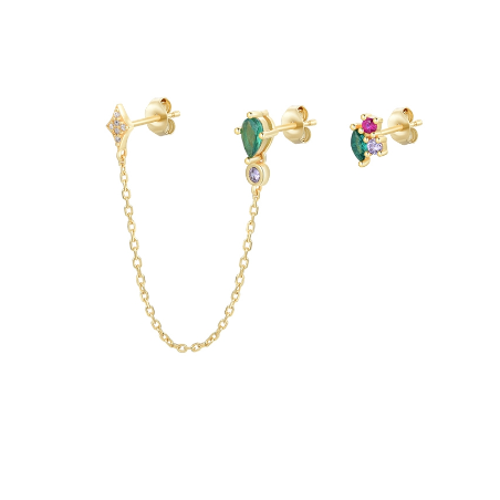 Prachtige set van 2 oorbellen, 1 dubbele voor 2 gaatjes en 1 enkele stud.