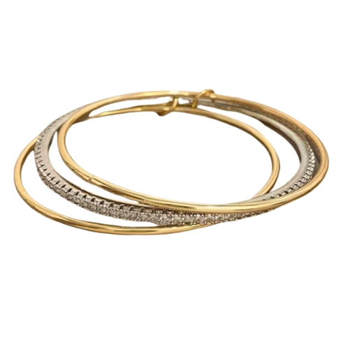 Drielaagse armband met goud en zilver kleurige armbanden.