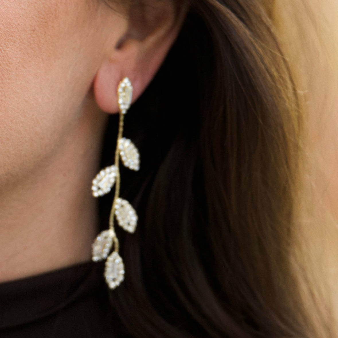 Schitterende statement oorbellen in goud met witte strass steentjes in de vorm van een bloem.